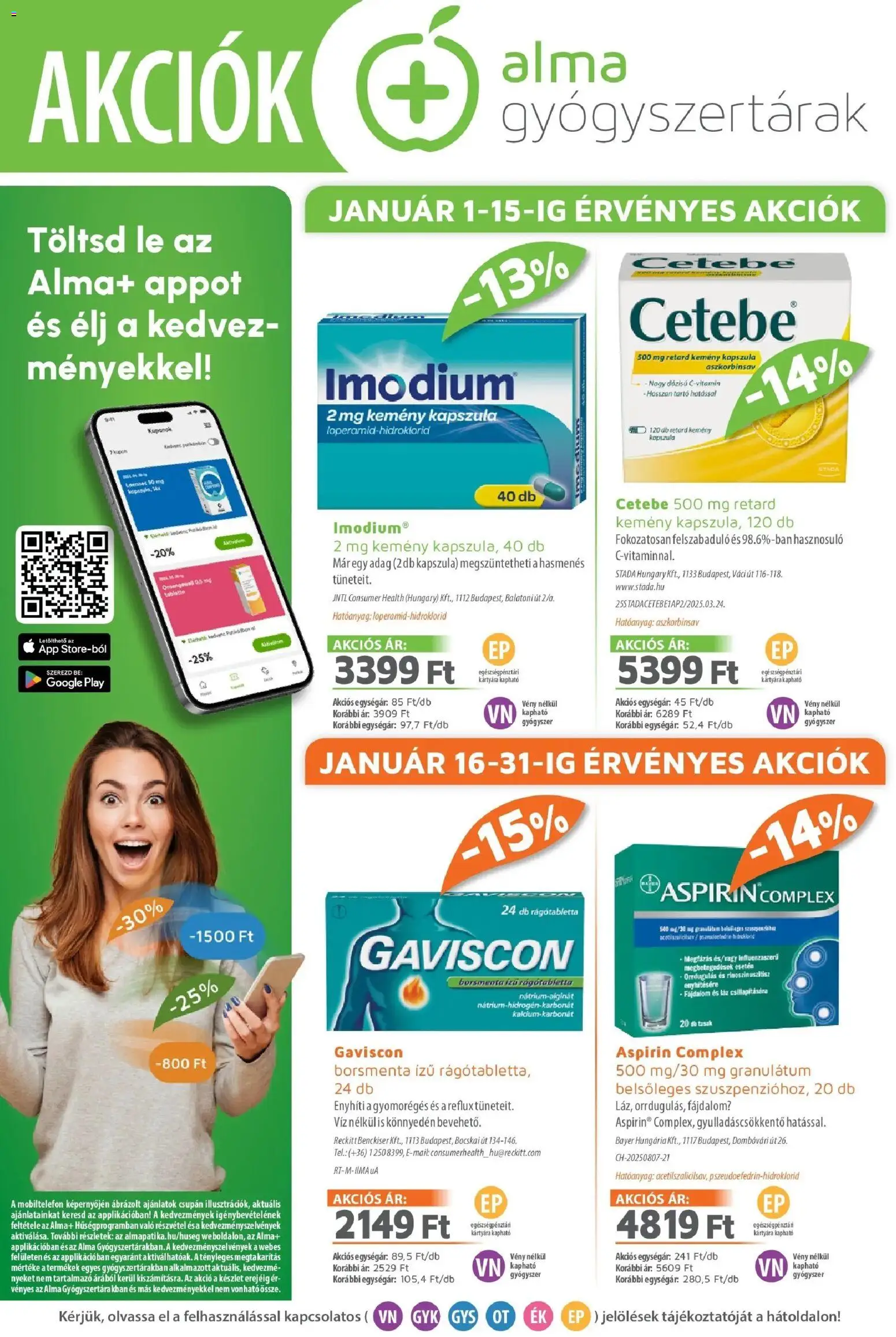 Az új Alma Gyógyszertárak akciós újság lapozható online formában bárhonnan könnyedén megtekinthető, így néhány kattintással felfedezheti a legjobb aktuális ajánlatokat. A katalógusban részletesen látható, hogy mely termékek meddig érvényesek (2025.12.31. - 2026.01.31.), ezért érdemes időben kihasználni a kedvezményeket. A heti szórólap nemcsak az alapvető élelmiszerekre, hanem a háztartási cikkekre és szezonális újdonságokra is jelentős árengedményeket kínál, így minden vásárlás során spórolhat. Ha szeret előre tervezni, lapozza át a Alma Gyógyszertárak újságot, és állítsa össze a saját bevásárlólistáját a legjobb ajánlatok alapján!
