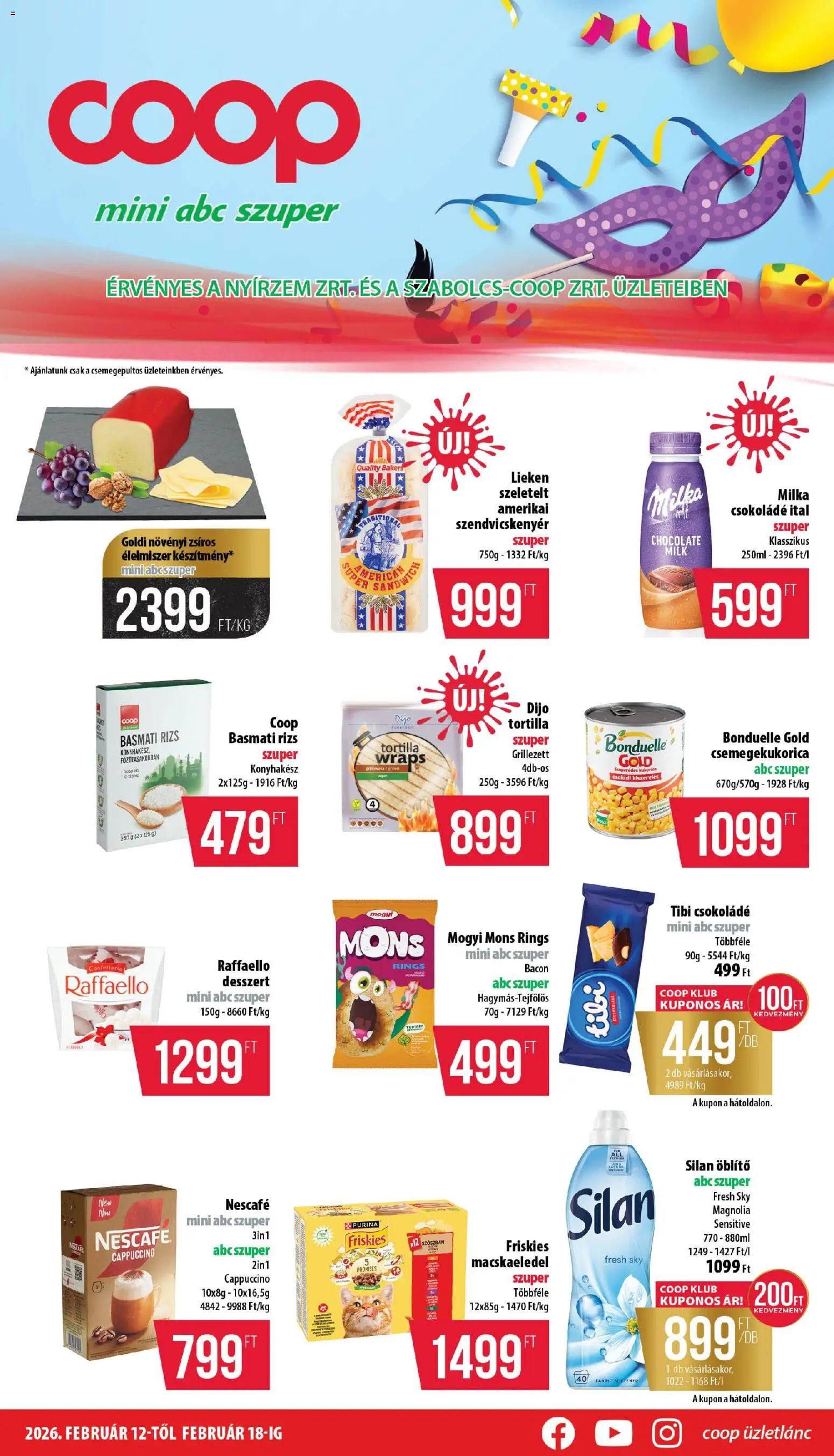 Az új COOP akciós újság lapozható online formában bárhonnan könnyedén megtekinthető, így néhány kattintással felfedezheti a legjobb aktuális ajánlatokat. A katalógusban részletesen látható, hogy mely termékek meddig érvényesek (2026.02.12. - 2026.02.18.), ezért érdemes időben kihasználni a kedvezményeket. A heti szórólap nemcsak az alapvető élelmiszerekre, hanem a háztartási cikkekre és szezonális újdonságokra is jelentős árengedményeket kínál, így minden vásárlás során spórolhat. Ha szeret előre tervezni, lapozza át a COOP újságot, és állítsa össze a saját bevásárlólistáját a legjobb ajánlatok alapján!