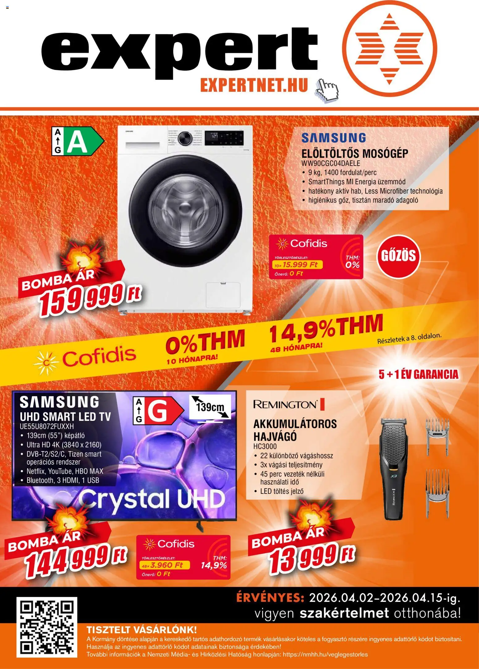 Érkezett a(z) Expert legfrissebb akciós újsága, mely az egyik legkedveltebb áruházlánc Magyarországon. Az új szórólap, ami 12 oldalból áll, számos vonzó ajánlatot kínál, amelyek csak rövid ideig, 2026.04.02. - 2026.04.15. között érvényesek.