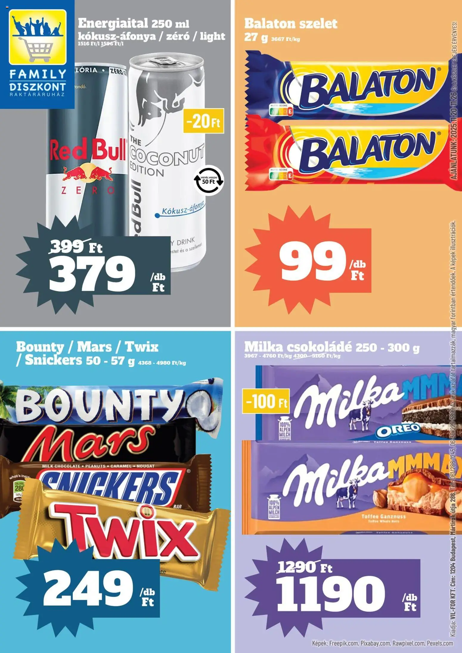 Az új Family Diszkont akciós újság lapozható online formában bárhonnan könnyedén megtekinthető, így néhány kattintással felfedezheti a legjobb aktuális ajánlatokat. A katalógusban részletesen látható, hogy mely termékek meddig érvényesek (2025.11.20. - 2025.11.26.), ezért érdemes időben kihasználni a kedvezményeket. A heti szórólap nemcsak az alapvető élelmiszerekre, hanem a háztartási cikkekre és szezonális újdonságokra is jelentős árengedményeket kínál, így minden vásárlás során spórolhat. Ha szeret előre tervezni, lapozza át a Family Diszkont újságot, és állítsa össze a saját bevásárlólistáját a legjobb ajánlatok alapján!
