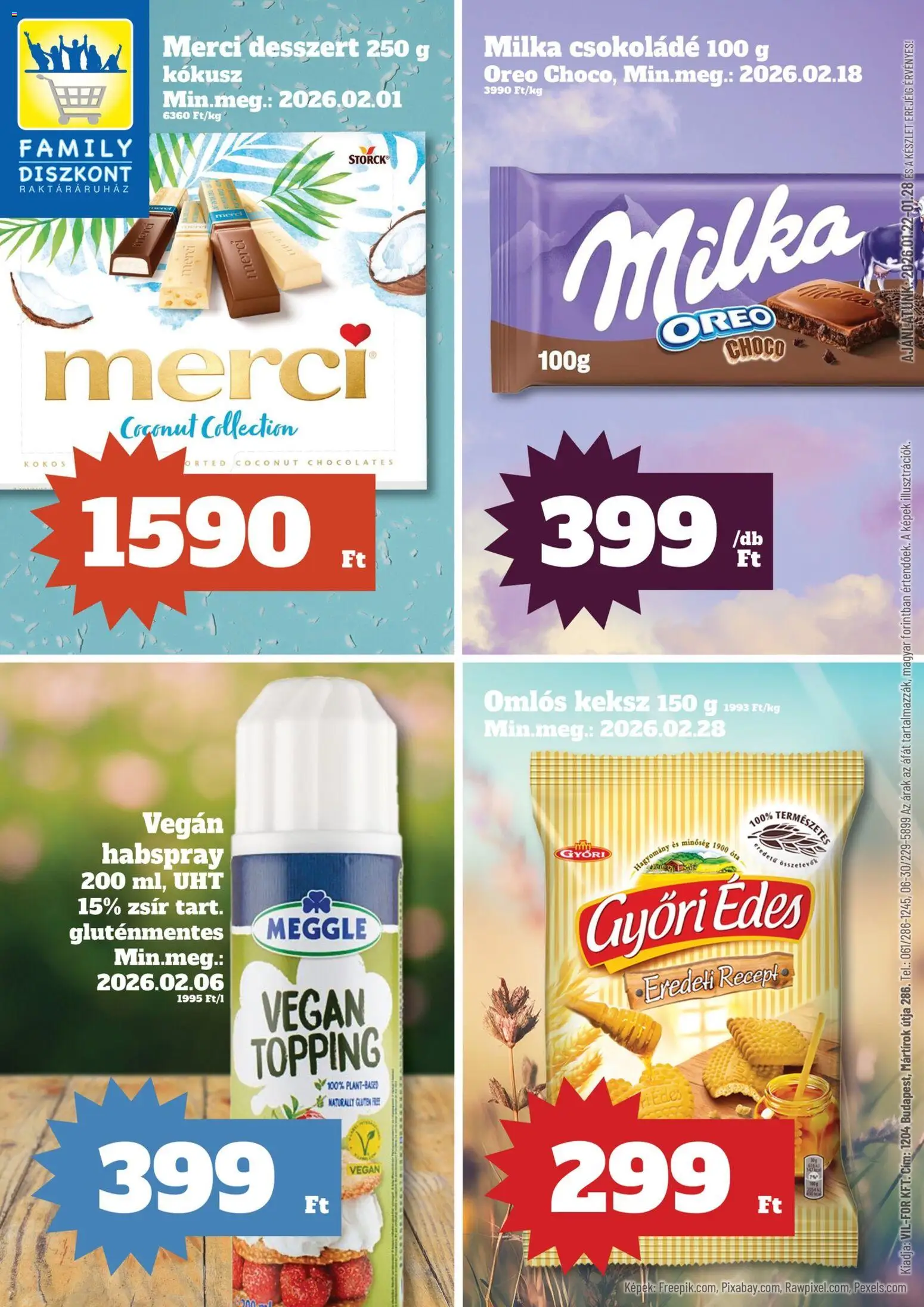 Az új Family Diszkont akciós újság lapozható online formában bárhonnan könnyedén megtekinthető, így néhány kattintással felfedezheti a legjobb aktuális ajánlatokat. A katalógusban részletesen látható, hogy mely termékek meddig érvényesek (2026.01.22. - 2026.01.28.), ezért érdemes időben kihasználni a kedvezményeket. A heti szórólap nemcsak az alapvető élelmiszerekre, hanem a háztartási cikkekre és szezonális újdonságokra is jelentős árengedményeket kínál, így minden vásárlás során spórolhat. Ha szeret előre tervezni, lapozza át a Family Diszkont újságot, és állítsa össze a saját bevásárlólistáját a legjobb ajánlatok alapján!