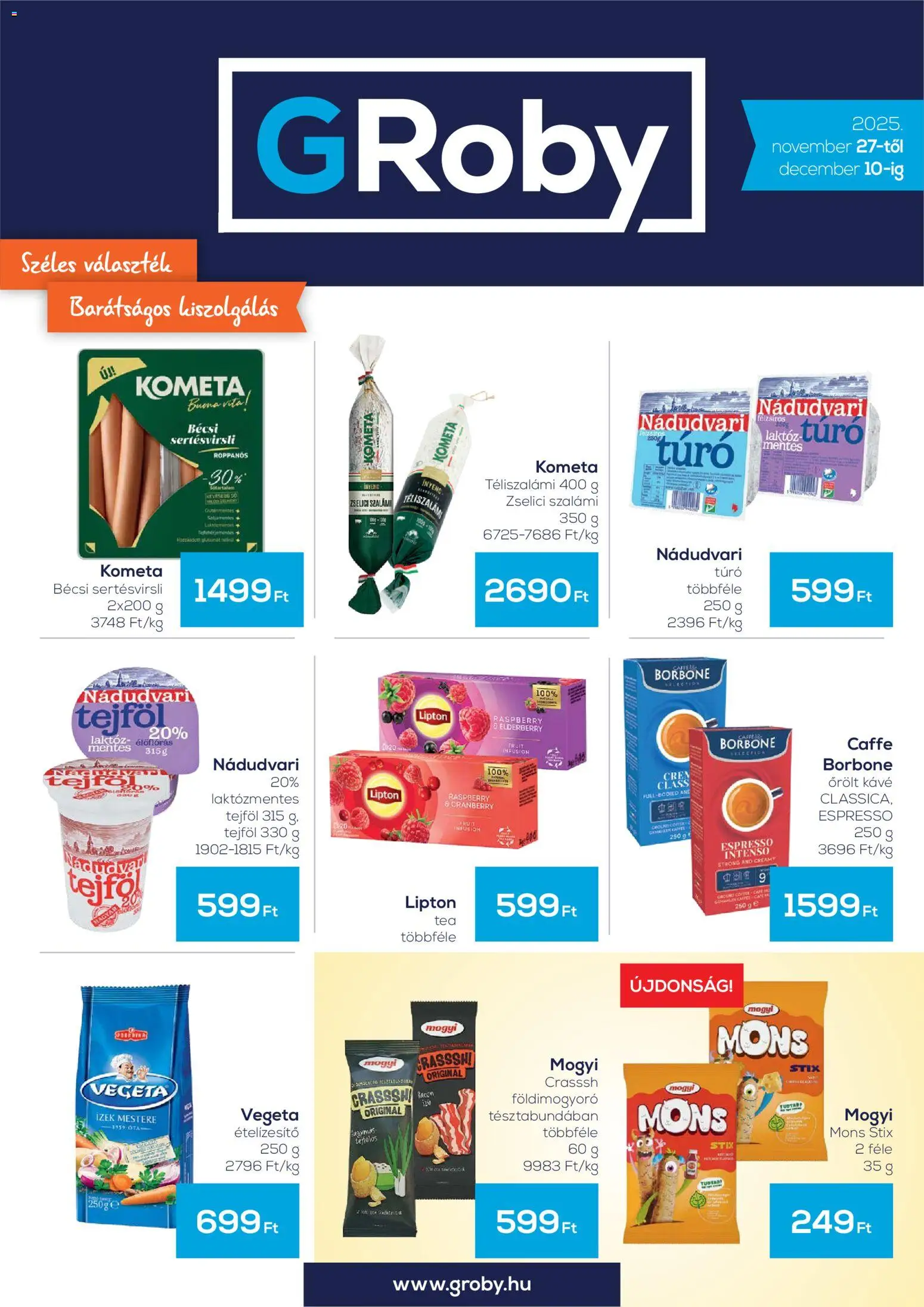 Az új G'Roby akciós újság lapozható online formában bárhonnan könnyedén megtekinthető, így néhány kattintással felfedezheti a legjobb aktuális ajánlatokat. A katalógusban részletesen látható, hogy mely termékek meddig érvényesek (2025.11.27. - 2025.12.10.), ezért érdemes időben kihasználni a kedvezményeket. A heti szórólap nemcsak az alapvető élelmiszerekre, hanem a háztartási cikkekre és szezonális újdonságokra is jelentős árengedményeket kínál, így minden vásárlás során spórolhat. Ha szeret előre tervezni, lapozza át a G'Roby újságot, és állítsa össze a saját bevásárlólistáját a legjobb ajánlatok alapján!