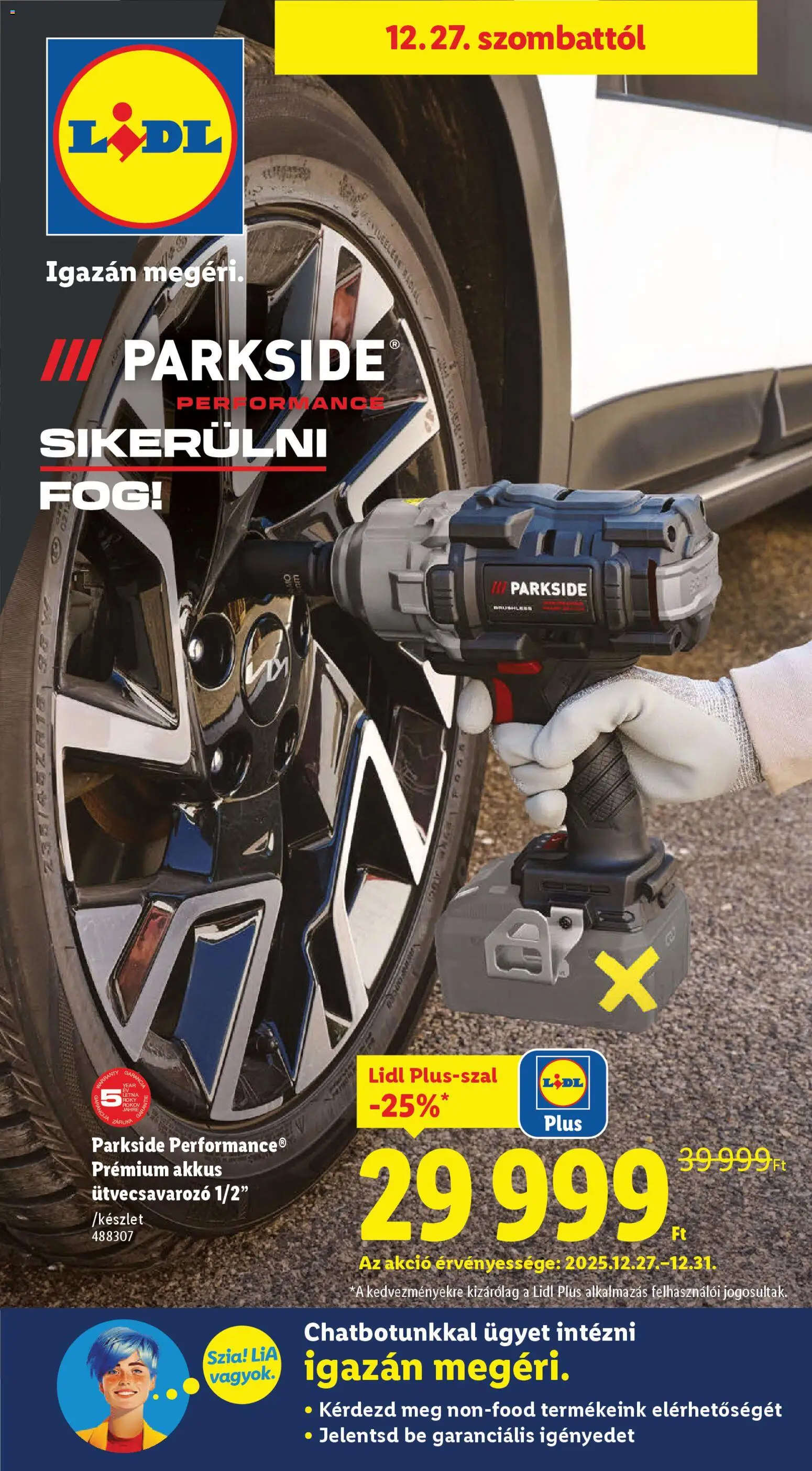 Az új Lidl akciós újság lapozható online formában bárhonnan könnyedén megtekinthető, így néhány kattintással felfedezheti a legjobb aktuális ajánlatokat. A katalógusban részletesen látható, hogy mely termékek meddig érvényesek (2025.12.27. - 2025.12.31.), ezért érdemes időben kihasználni a kedvezményeket. A heti szórólap nemcsak az alapvető élelmiszerekre, hanem a háztartási cikkekre és szezonális újdonságokra is jelentős árengedményeket kínál, így minden vásárlás során spórolhat. Ha szeret előre tervezni, lapozza át a Lidl újságot, és állítsa össze a saját bevásárlólistáját a legjobb ajánlatok alapján!