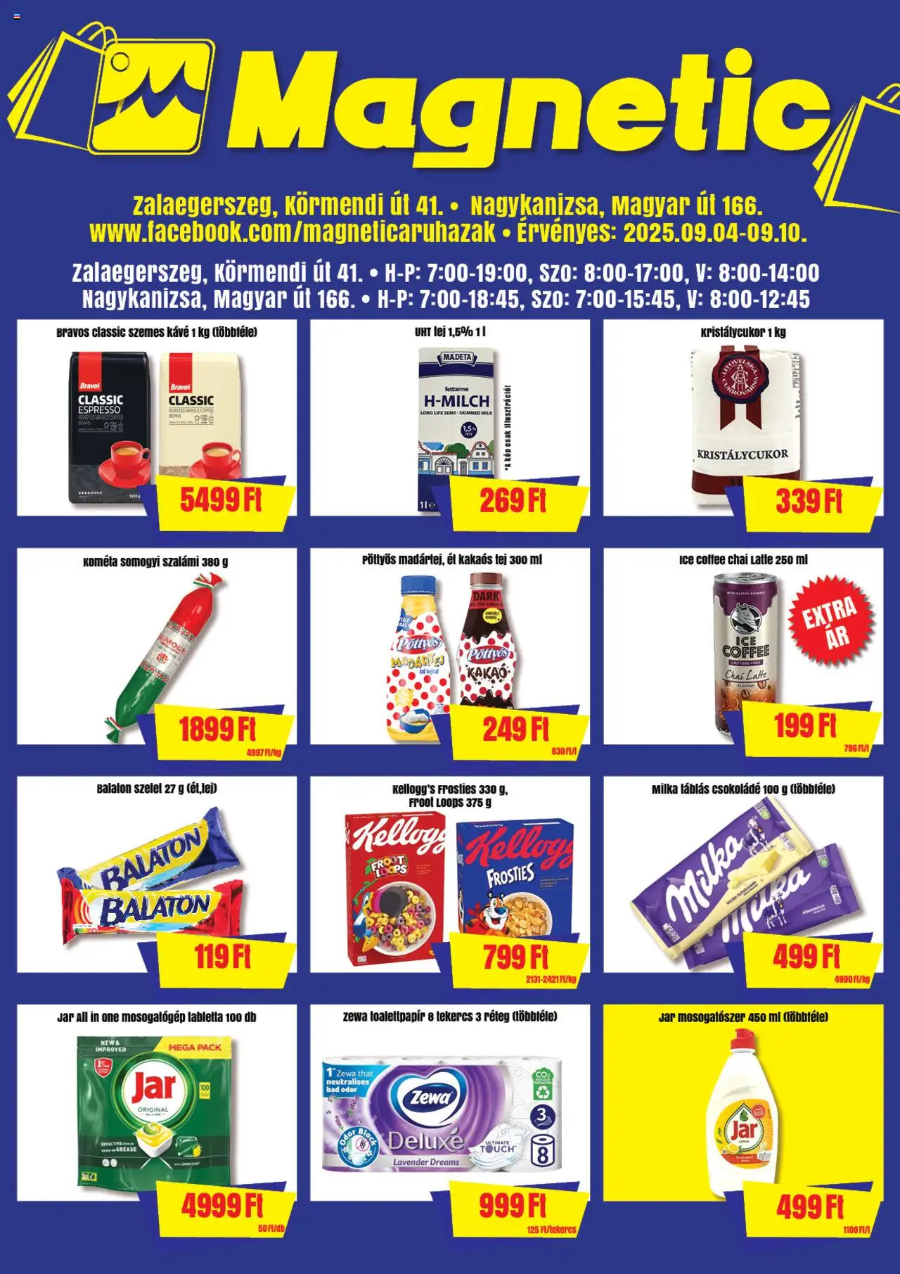 Érkezett a(z) Magnetic legfrissebb akciós újsága, mely az egyik legkedveltebb áruházlánc Magyarországon. Az új szórólap, ami 4 oldalból áll, számos vonzó ajánlatot kínál, amelyek csak rövid ideig, 2025.09.04. - 2025.09.10. között érvényesek.