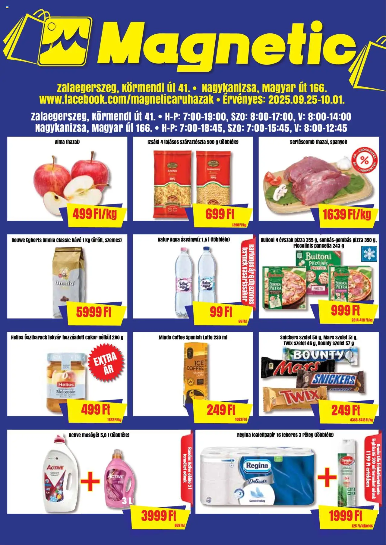 Érkezett a(z) Magnetic legfrissebb akciós újsága, mely az egyik legkedveltebb áruházlánc Magyarországon. Az új szórólap, ami 4 oldalból áll, számos vonzó ajánlatot kínál, amelyek csak rövid ideig, 2025.09.25. - 2025.10.01. között érvényesek.