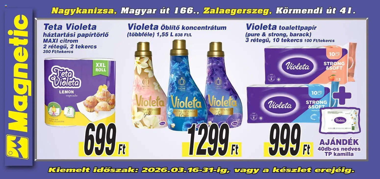 Az új Magnetic akciós újság lapozható online formában bárhonnan könnyedén megtekinthető, így néhány kattintással felfedezheti a legjobb aktuális ajánlatokat. A katalógusban részletesen látható, hogy mely termékek meddig érvényesek (2026.03.16. - 2026.03.31.), ezért érdemes időben kihasználni a kedvezményeket. A heti szórólap nemcsak az alapvető élelmiszerekre, hanem a háztartási cikkekre és szezonális újdonságokra is jelentős árengedményeket kínál, így minden vásárlás során spórolhat. Ha szeret előre tervezni, lapozza át a Magnetic újságot, és állítsa össze a saját bevásárlólistáját a legjobb ajánlatok alapján!