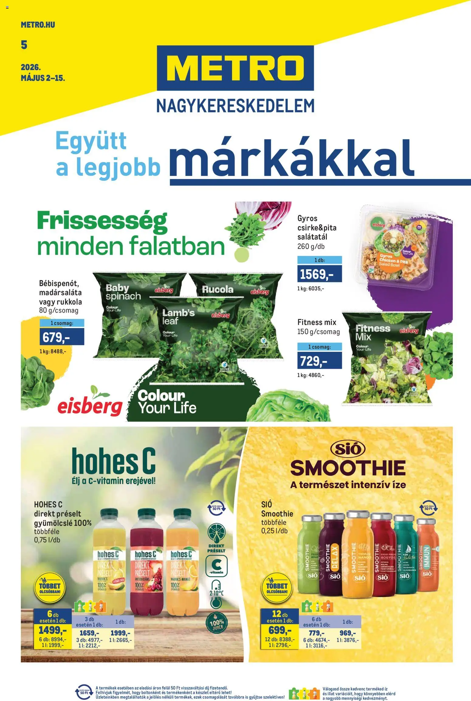 Az új Metro akciós újság lapozható online formában bárhonnan könnyedén megtekinthető, így néhány kattintással felfedezheti a legjobb aktuális ajánlatokat. A katalógusban részletesen látható, hogy mely termékek meddig érvényesek (2026.05.02. - 2026.05.15.), ezért érdemes időben kihasználni a kedvezményeket. A heti szórólap nemcsak az alapvető élelmiszerekre, hanem a háztartási cikkekre és szezonális újdonságokra is jelentős árengedményeket kínál, így minden vásárlás során spórolhat. Ha szeret előre tervezni, lapozza át a Metro újságot, és állítsa össze a saját bevásárlólistáját a legjobb ajánlatok alapján!