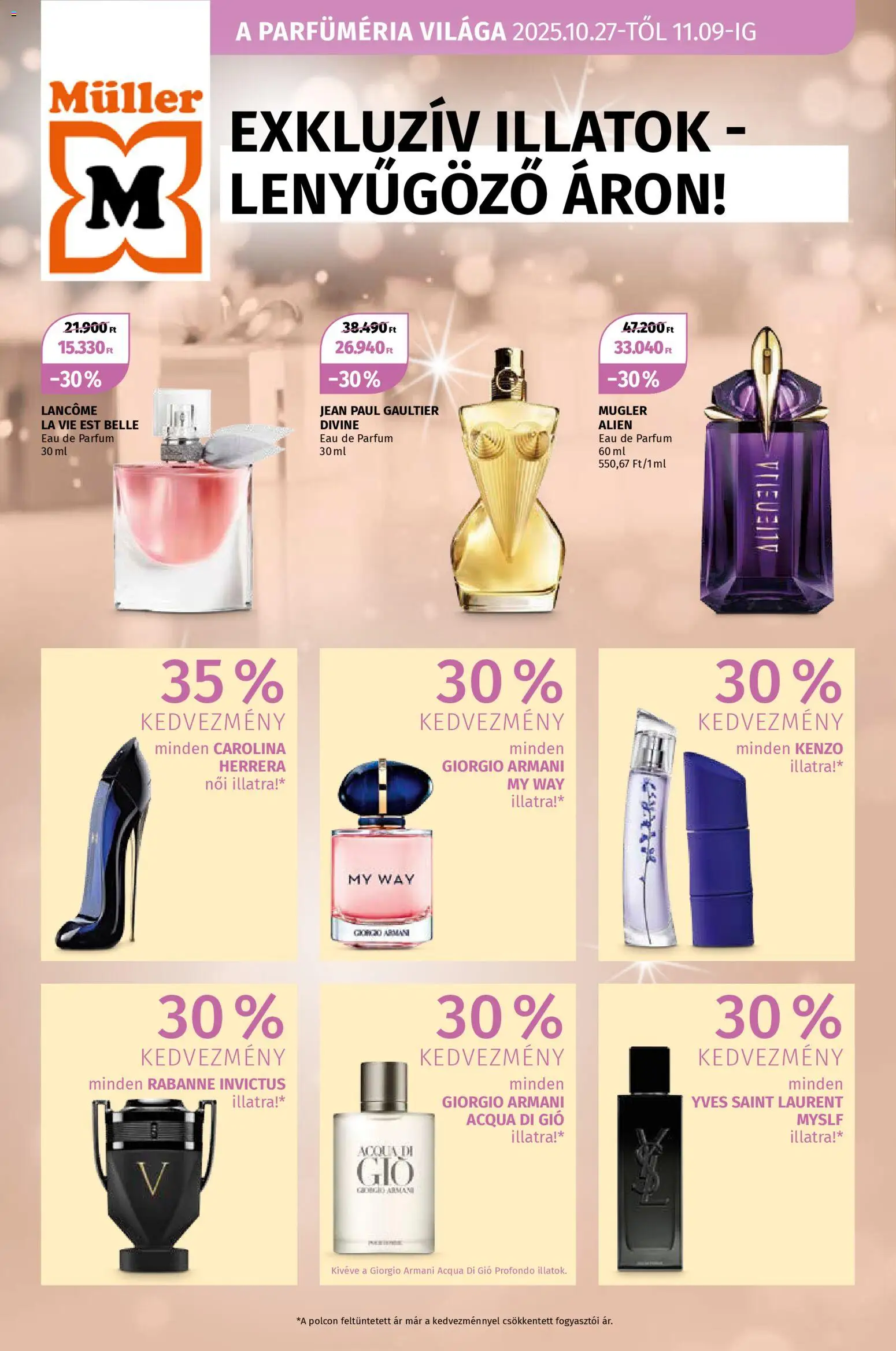 Érkezett a(z) Müller legfrissebb akciós újsága, mely az egyik legkedveltebb áruházlánc Magyarországon. Az új szórólap, ami 4 oldalból áll, számos vonzó ajánlatot kínál, amelyek csak rövid ideig, 2025.10.27. - 2025.11.09. között érvényesek.