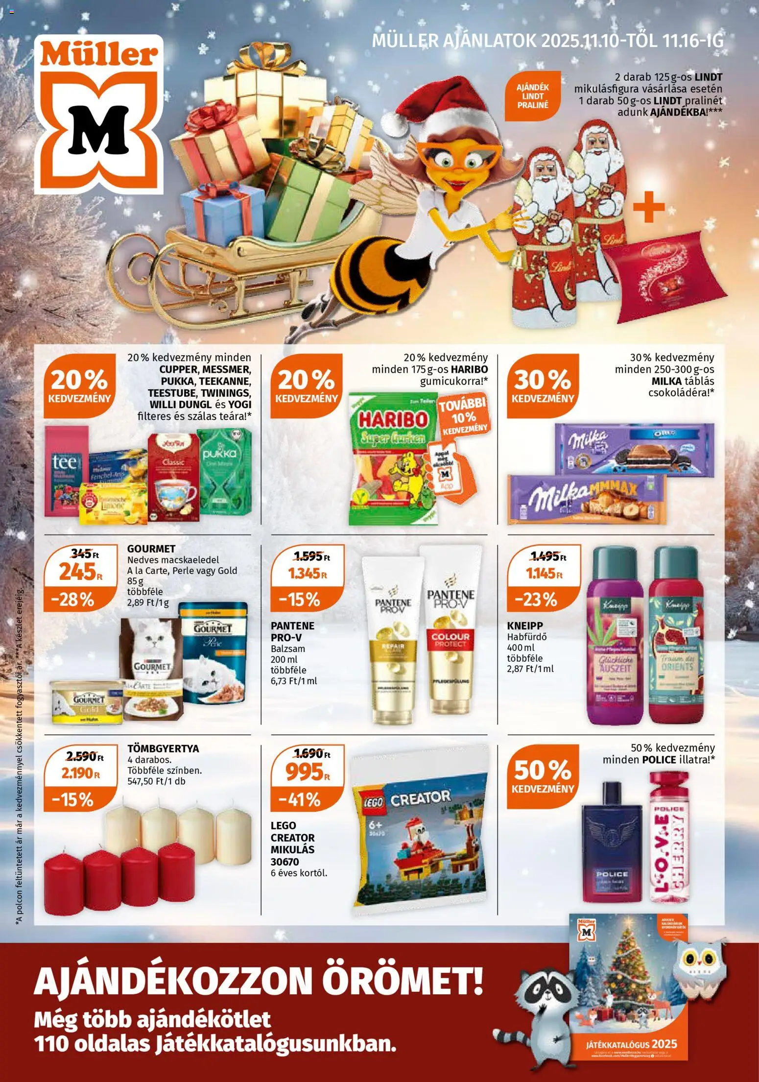 Érkezett a(z) Müller legfrissebb akciós újsága, mely az egyik legkedveltebb áruházlánc Magyarországon. Az új szórólap, ami 12 oldalból áll, számos vonzó ajánlatot kínál, amelyek csak rövid ideig, 2025.11.10. - 2025.11.16. között érvényesek.