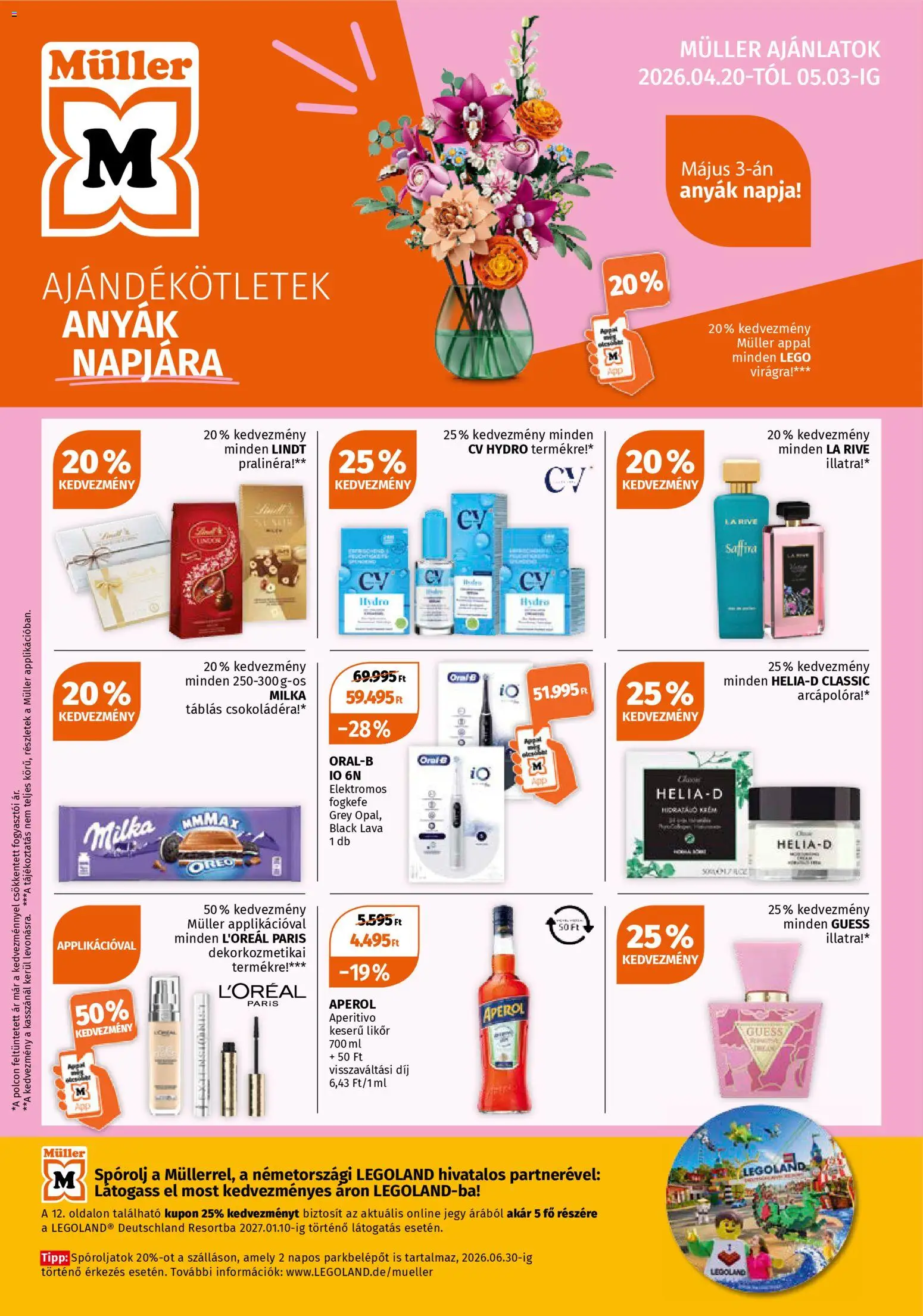 Érkezett a(z) Müller legfrissebb akciós újsága, mely az egyik legkedveltebb áruházlánc Magyarországon. Az új szórólap, ami 12 oldalból áll, számos vonzó ajánlatot kínál, amelyek csak rövid ideig, 2026.04.20. - 2026.05.03. között érvényesek.