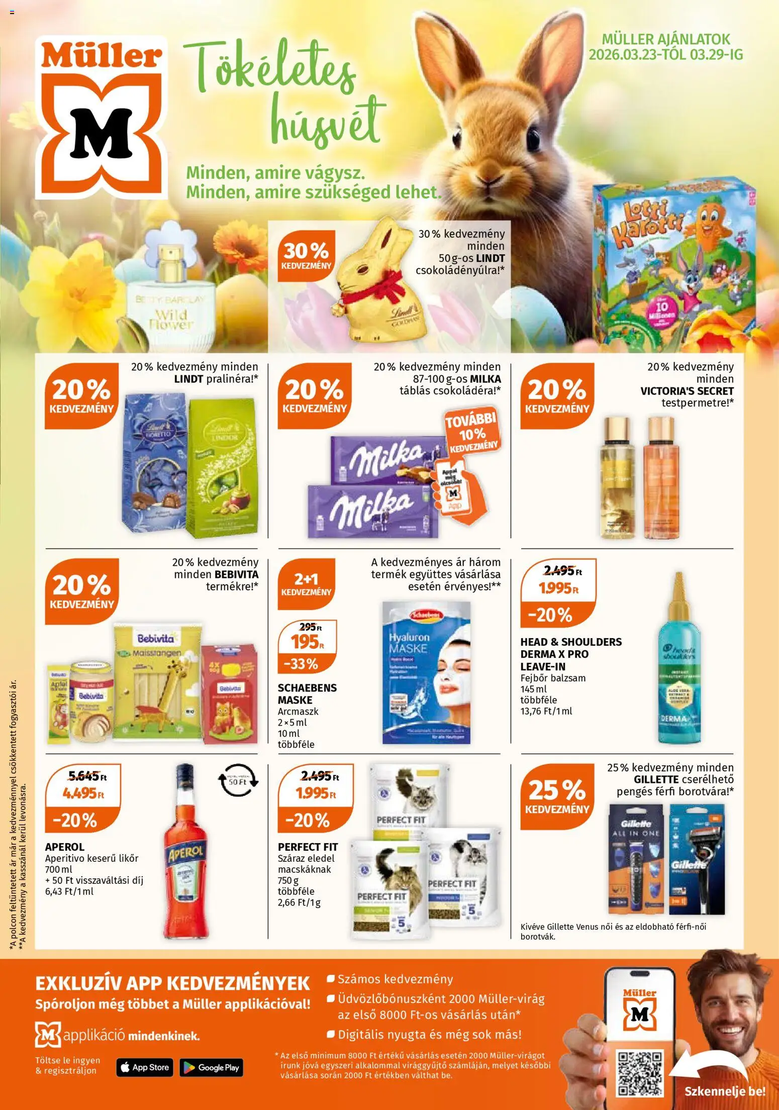 Az új Müller akciós újság lapozható online formában bárhonnan könnyedén megtekinthető, így néhány kattintással felfedezheti a legjobb aktuális ajánlatokat. A katalógusban részletesen látható, hogy mely termékek meddig érvényesek (2026.03.23. - 2026.03.29.), ezért érdemes időben kihasználni a kedvezményeket. A heti szórólap nemcsak az alapvető élelmiszerekre, hanem a háztartási cikkekre és szezonális újdonságokra is jelentős árengedményeket kínál, így minden vásárlás során spórolhat. Ha szeret előre tervezni, lapozza át a Müller újságot, és állítsa össze a saját bevásárlólistáját a legjobb ajánlatok alapján!