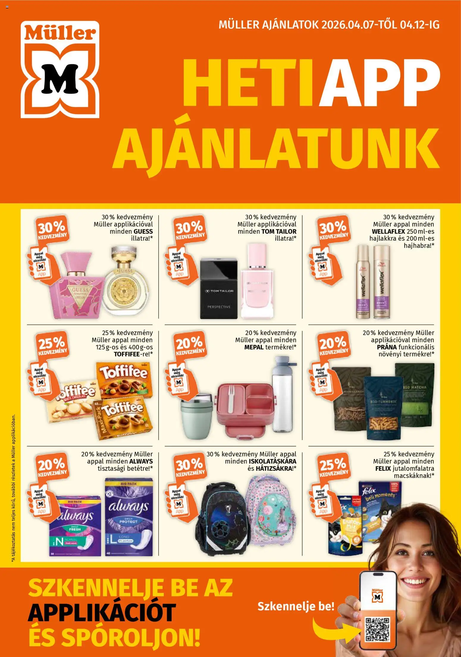 Az új Müller akciós újság lapozható online formában bárhonnan könnyedén megtekinthető, így néhány kattintással felfedezheti a legjobb aktuális ajánlatokat. A katalógusban részletesen látható, hogy mely termékek meddig érvényesek (2026.04.07. - 2026.12.04.), ezért érdemes időben kihasználni a kedvezményeket. A heti szórólap nemcsak az alapvető élelmiszerekre, hanem a háztartási cikkekre és szezonális újdonságokra is jelentős árengedményeket kínál, így minden vásárlás során spórolhat. Ha szeret előre tervezni, lapozza át a Müller újságot, és állítsa össze a saját bevásárlólistáját a legjobb ajánlatok alapján!