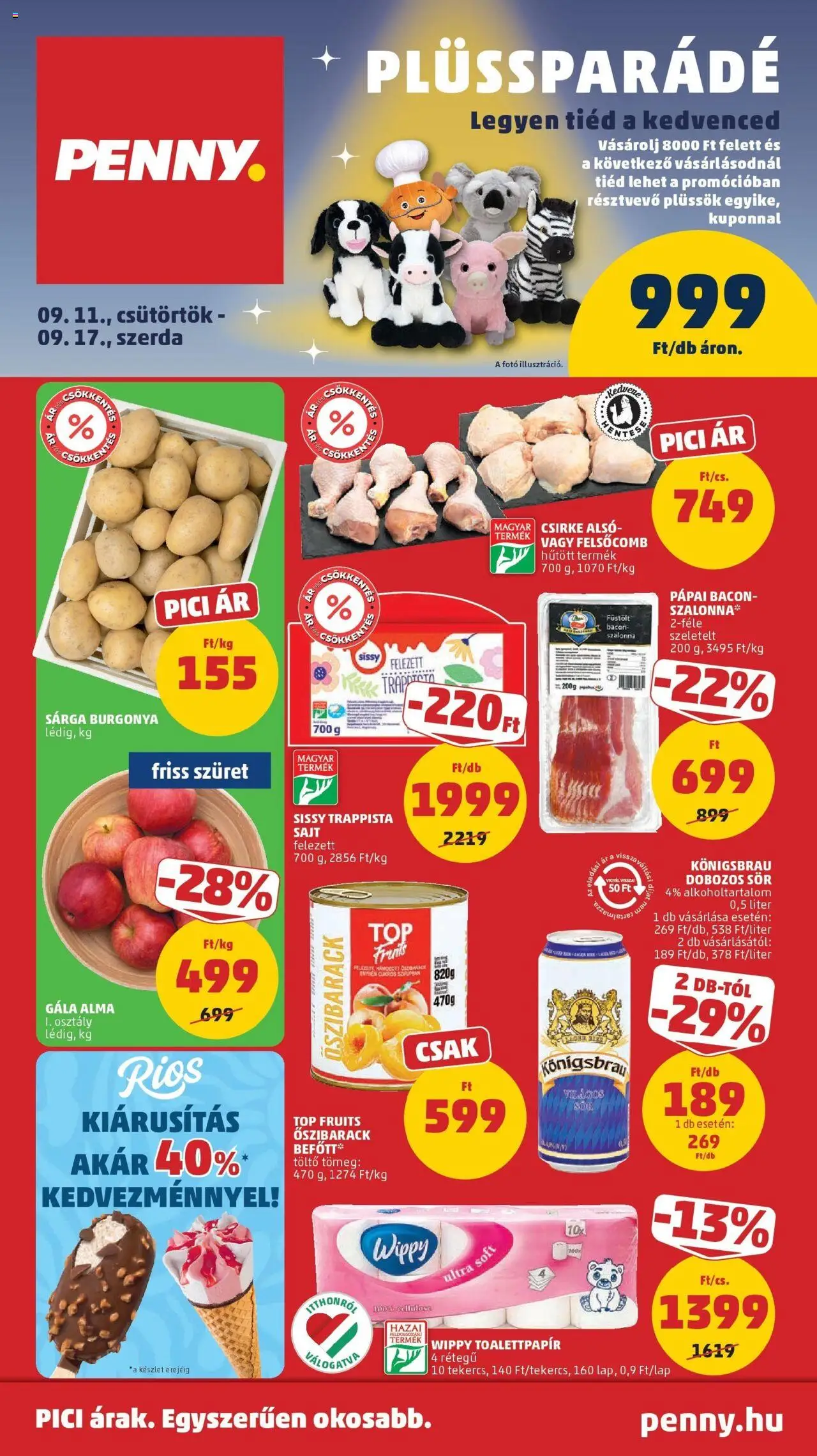 Az új PENNY akciós újság lapozható online formában bárhonnan könnyedén megtekinthető, így néhány kattintással felfedezheti a legjobb aktuális ajánlatokat. A katalógusban részletesen látható, hogy mely termékek meddig érvényesek (2025.09.11. - 2025.09.17.), ezért érdemes időben kihasználni a kedvezményeket. A heti szórólap nemcsak az alapvető élelmiszerekre, hanem a háztartási cikkekre és szezonális újdonságokra is jelentős árengedményeket kínál, így minden vásárlás során spórolhat. Ha szeret előre tervezni, lapozza át a PENNY újságot, és állítsa össze a saját bevásárlólistáját a legjobb ajánlatok alapján!