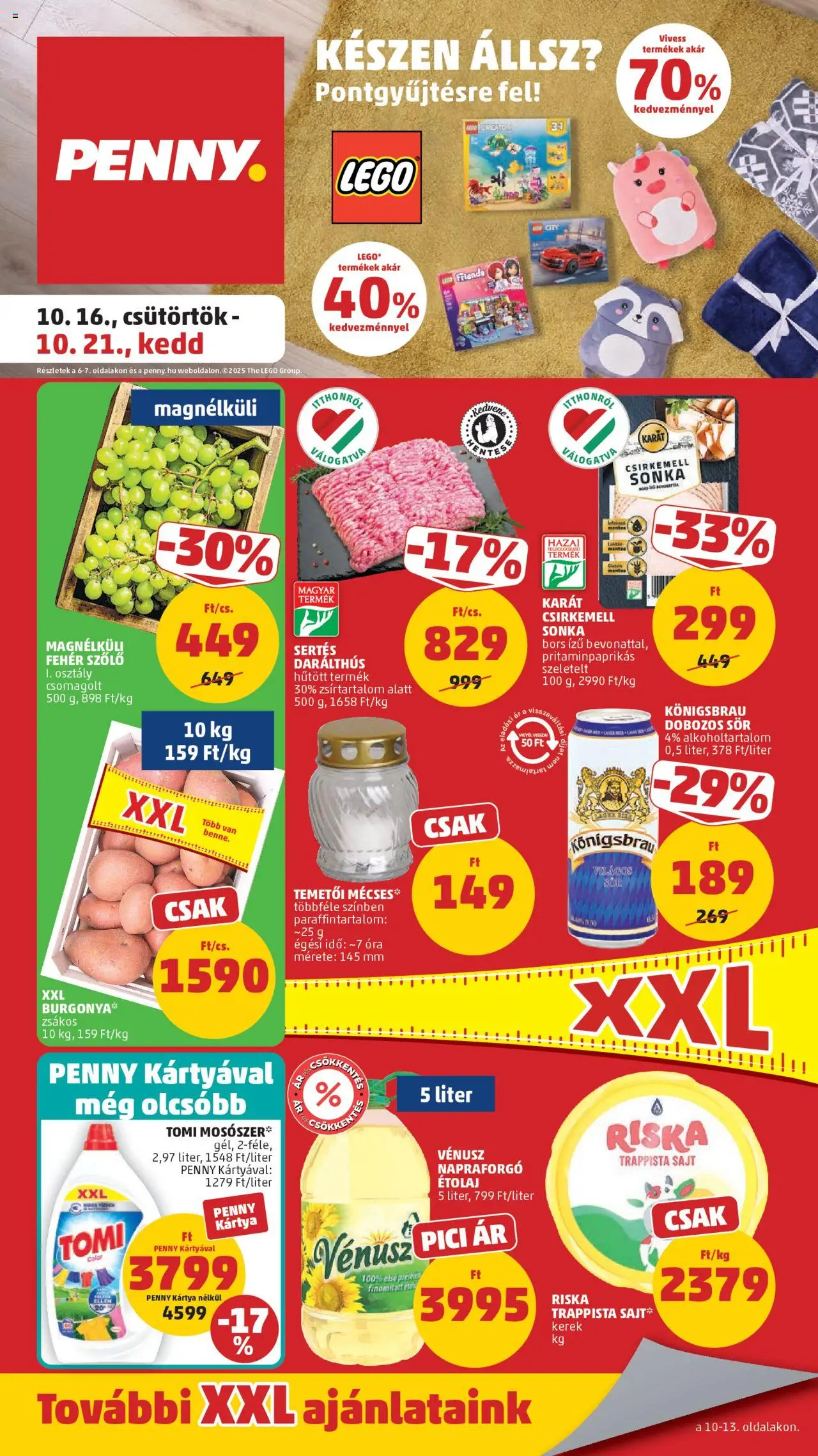 Érkezett a(z) PENNY legfrissebb akciós újsága, mely az egyik legkedveltebb áruházlánc Magyarországon. Az új szórólap, ami 42 oldalból áll, számos vonzó ajánlatot kínál, amelyek csak rövid ideig, 2025.10.16. - 2025.10.21. között érvényesek.
