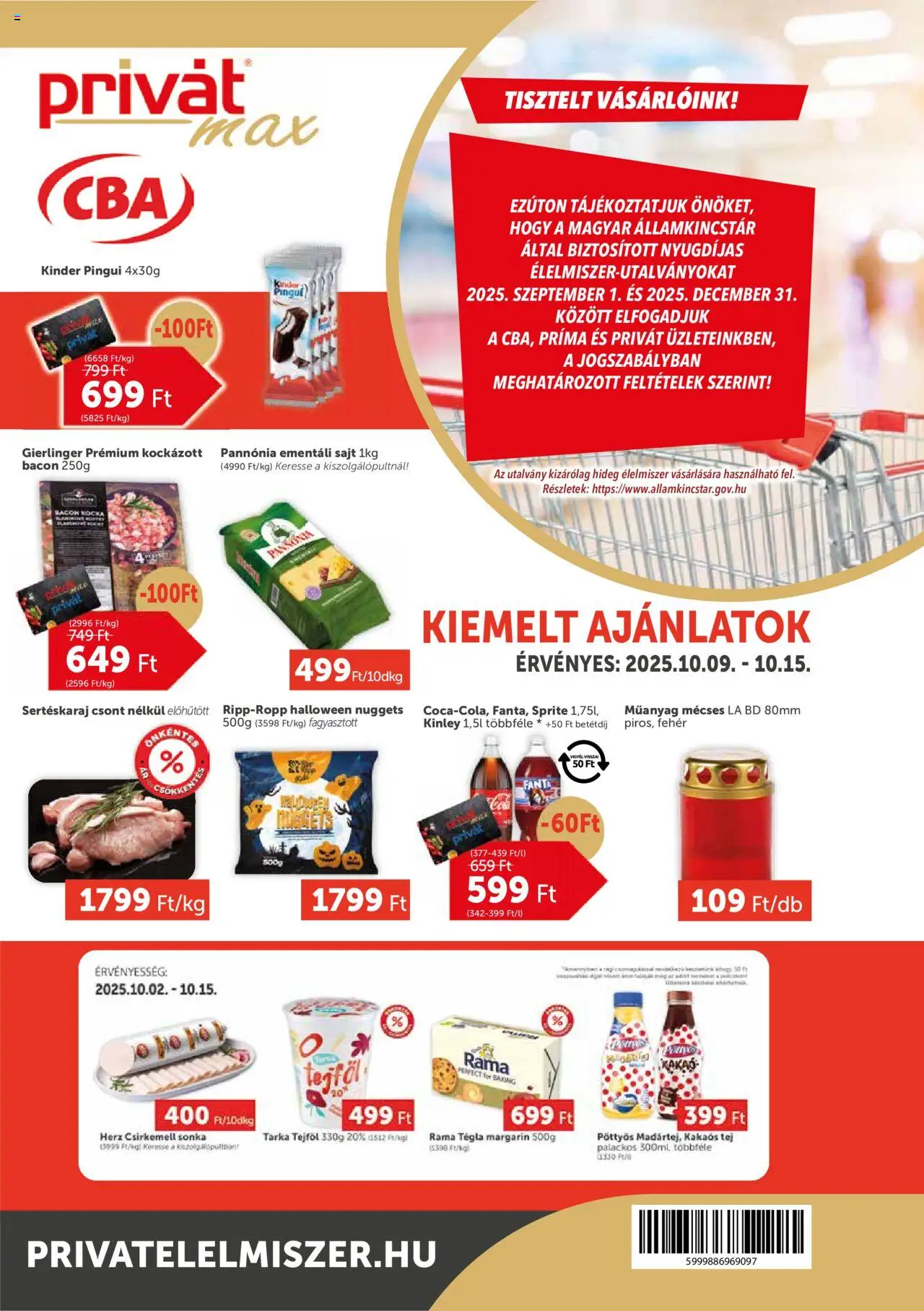 Érkezett a(z) PRIVÁT legfrissebb akciós újsága, mely az egyik legkedveltebb áruházlánc Magyarországon. Az új szórólap, ami 8 oldalból áll, számos vonzó ajánlatot kínál, amelyek csak rövid ideig, 2025.10.09. - 2025.10.15. között érvényesek.