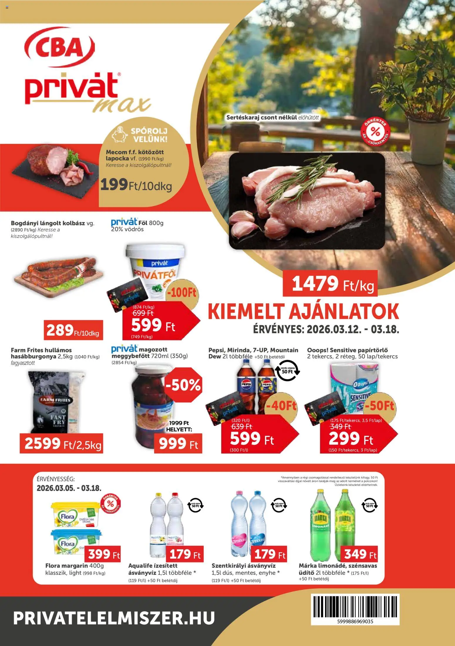 Az új PRIVÁT akciós újság lapozható online formában bárhonnan könnyedén megtekinthető, így néhány kattintással felfedezheti a legjobb aktuális ajánlatokat. A katalógusban részletesen látható, hogy mely termékek meddig érvényesek (2026.03.12. - 2026.03.18.), ezért érdemes időben kihasználni a kedvezményeket. A heti szórólap nemcsak az alapvető élelmiszerekre, hanem a háztartási cikkekre és szezonális újdonságokra is jelentős árengedményeket kínál, így minden vásárlás során spórolhat. Ha szeret előre tervezni, lapozza át a PRIVÁT újságot, és állítsa össze a saját bevásárlólistáját a legjobb ajánlatok alapján!
