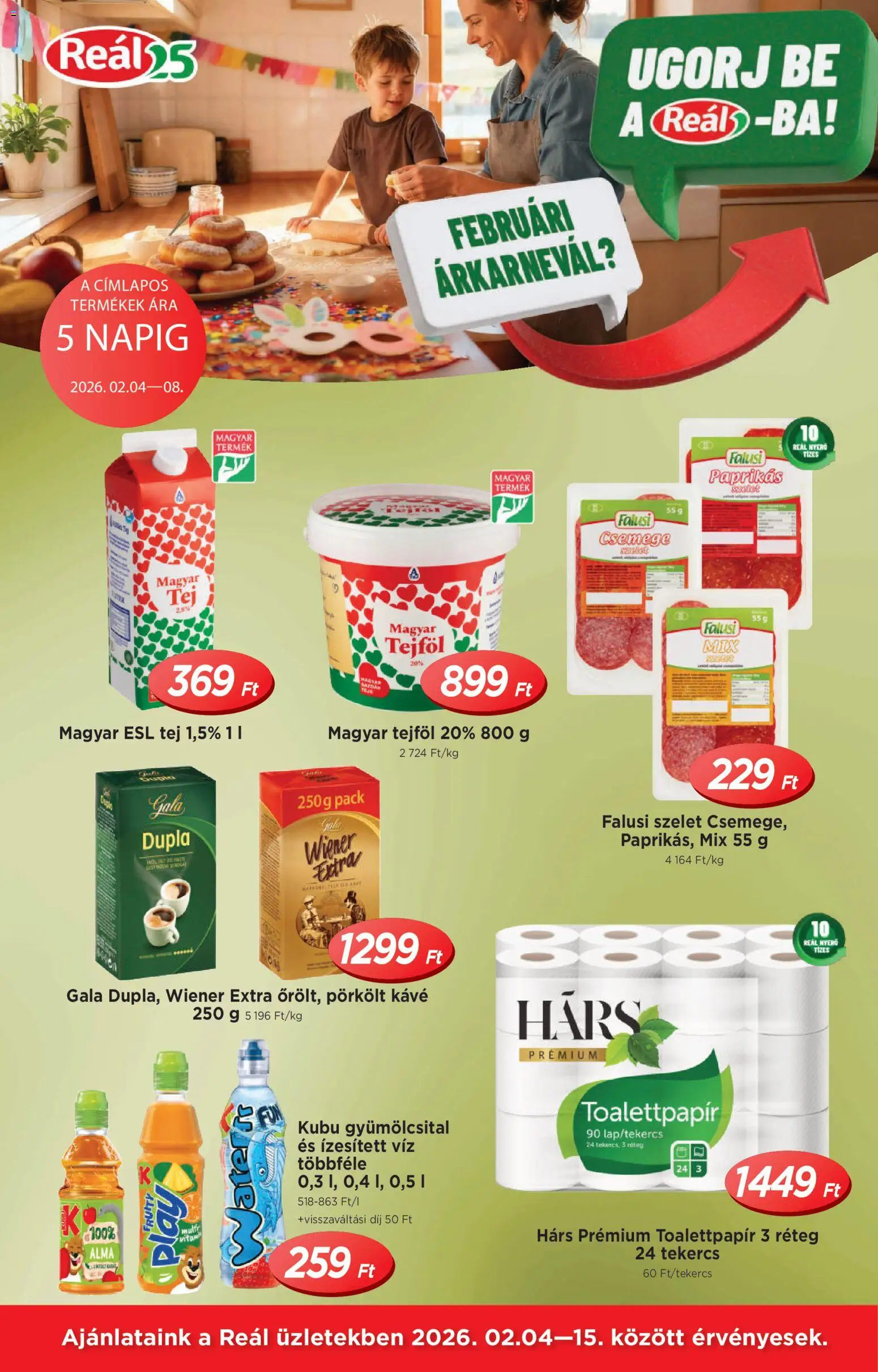 Az új Reál akciós újság lapozható online formában bárhonnan könnyedén megtekinthető, így néhány kattintással felfedezheti a legjobb aktuális ajánlatokat. A katalógusban részletesen látható, hogy mely termékek meddig érvényesek (2026.02.04. - 2026.02.15.), ezért érdemes időben kihasználni a kedvezményeket. A heti szórólap nemcsak az alapvető élelmiszerekre, hanem a háztartási cikkekre és szezonális újdonságokra is jelentős árengedményeket kínál, így minden vásárlás során spórolhat. Ha szeret előre tervezni, lapozza át a Reál újságot, és állítsa össze a saját bevásárlólistáját a legjobb ajánlatok alapján!