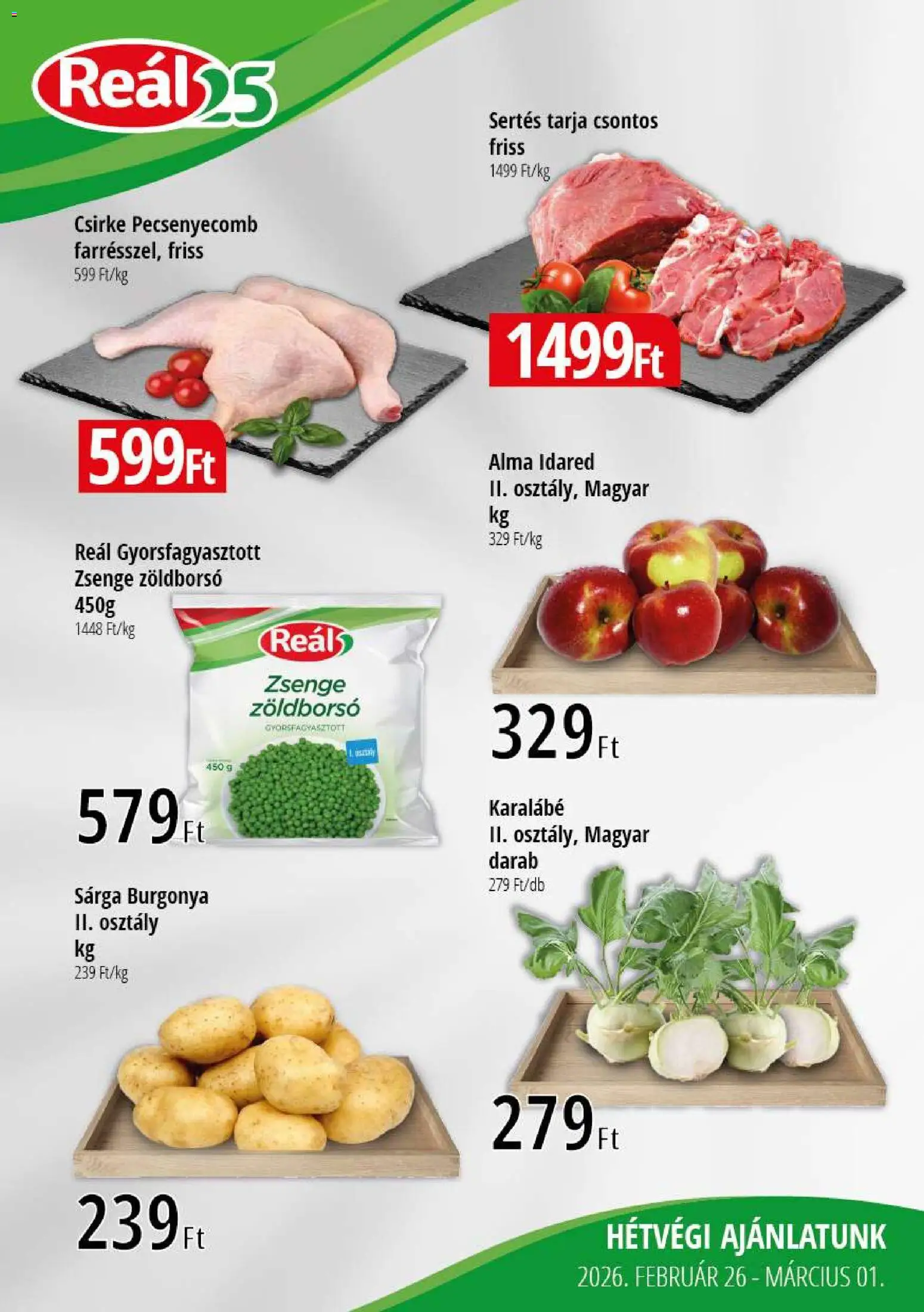 Érkezett a(z) Reál legfrissebb akciós újsága, mely az egyik legkedveltebb áruházlánc Magyarországon. Az új szórólap, ami 2 oldalból áll, számos vonzó ajánlatot kínál, amelyek csak rövid ideig, 2026.02.26. - 2026.03.01. között érvényesek.