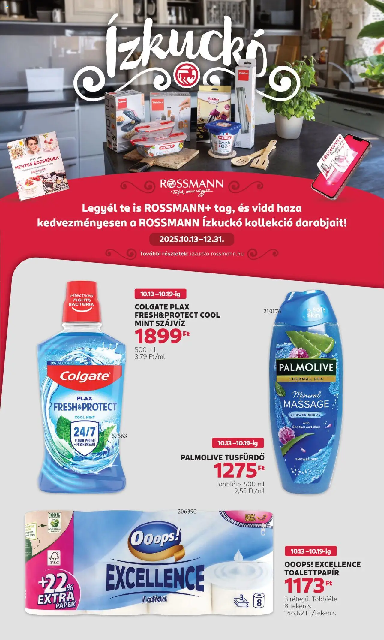 Érkezett a(z) Rossmann legfrissebb akciós újsága, mely az egyik legkedveltebb áruházlánc Magyarországon. Az új szórólap, ami 1 oldalból áll, számos vonzó ajánlatot kínál, amelyek csak rövid ideig, 2025.10.13. - 2025.10.19. között érvényesek.