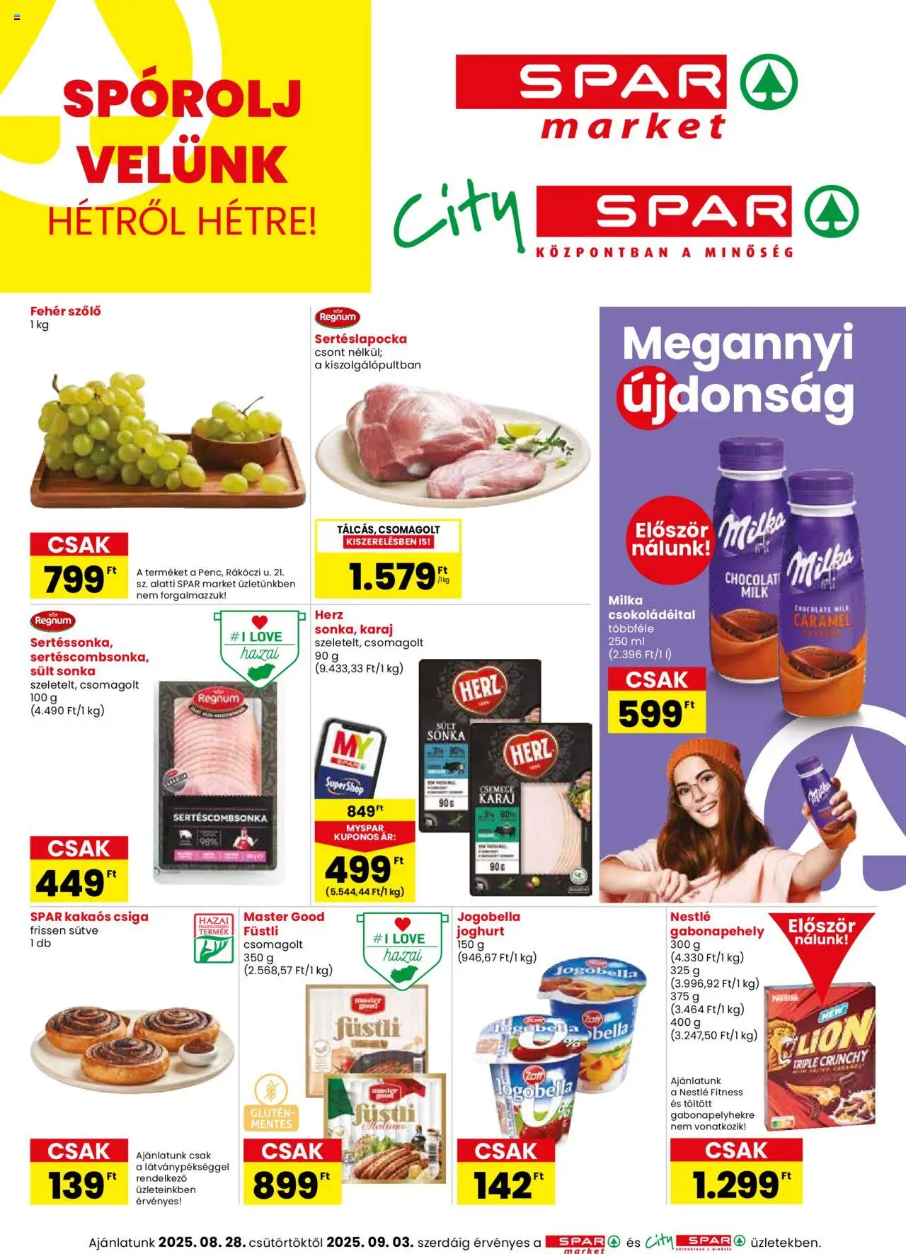 Érkezett a(z) Spar Market legfrissebb akciós újsága, mely az egyik legkedveltebb áruházlánc Magyarországon. Az új szórólap, ami 2 oldalból áll, számos vonzó ajánlatot kínál, amelyek csak rövid ideig, 2025.08.28. - 2025.09.03. között érvényesek.
