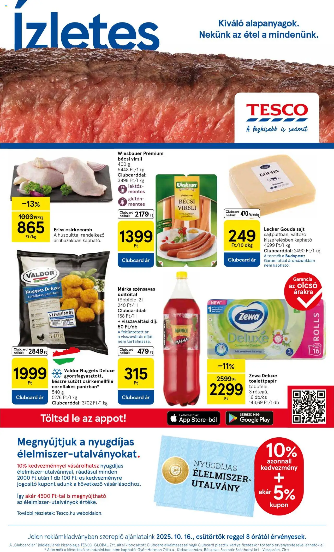 Érkezett a(z) Tesco legfrissebb akciós újsága, mely az egyik legkedveltebb áruházlánc Magyarországon. Az új szórólap, ami 8 oldalból áll, számos vonzó ajánlatot kínál, amelyek csak rövid ideig, 2025.10.16. - 2025.10.22. között érvényesek.