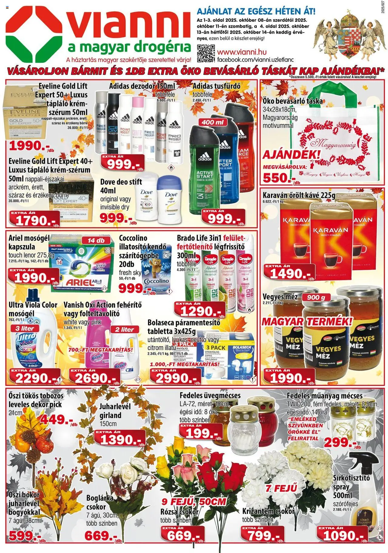 Érkezett a(z) Vianni legfrissebb akciós újsága, mely az egyik legkedveltebb áruházlánc Magyarországon. Az új szórólap, ami 4 oldalból áll, számos vonzó ajánlatot kínál, amelyek csak rövid ideig, 2025.10.08. - 2025.10.14. között érvényesek.