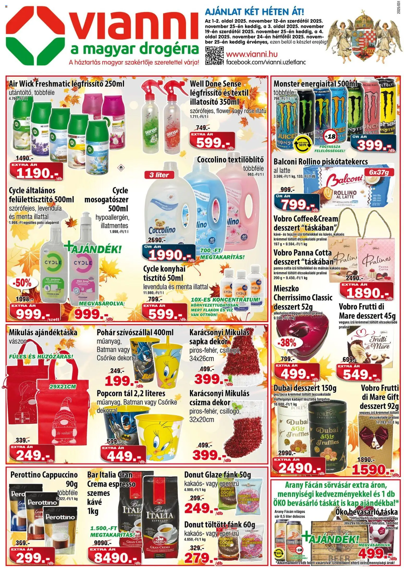 Érkezett a(z) Vianni legfrissebb akciós újsága, mely az egyik legkedveltebb áruházlánc Magyarországon. Az új szórólap, ami 4 oldalból áll, számos vonzó ajánlatot kínál, amelyek csak rövid ideig, 2025.11.12. - 2025.11.25. között érvényesek.