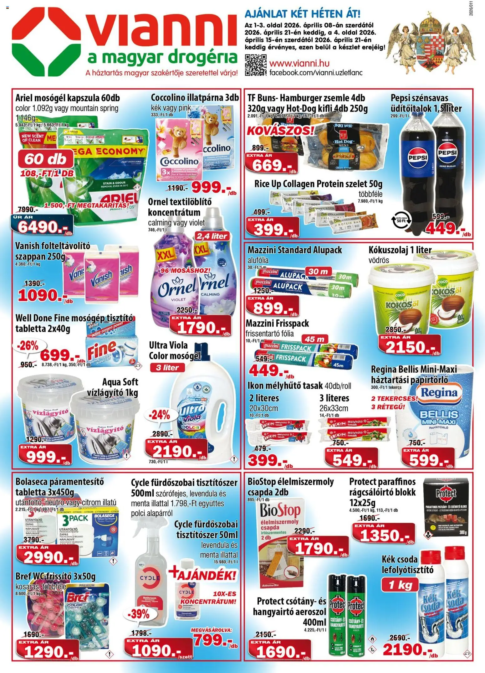 Az új Vianni akciós újság lapozható online formában bárhonnan könnyedén megtekinthető, így néhány kattintással felfedezheti a legjobb aktuális ajánlatokat. A katalógusban részletesen látható, hogy mely termékek meddig érvényesek (2026.04.08. - 2026.04.21.), ezért érdemes időben kihasználni a kedvezményeket. A heti szórólap nemcsak az alapvető élelmiszerekre, hanem a háztartási cikkekre és szezonális újdonságokra is jelentős árengedményeket kínál, így minden vásárlás során spórolhat. Ha szeret előre tervezni, lapozza át a Vianni újságot, és állítsa össze a saját bevásárlólistáját a legjobb ajánlatok alapján!
